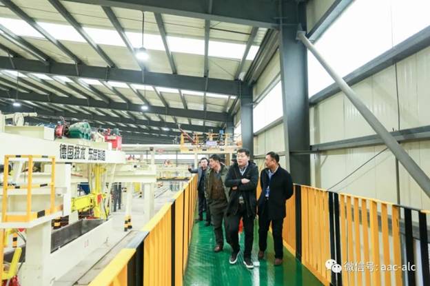 與會(huì)嘉賓參觀生產(chǎn)線——濰坊特鋼集團(tuán)有限公司年產(chǎn)30萬(wàn)m³砌塊-板材項(xiàng)目,該生產(chǎn)線采用東岳機(jī)械全套加氣設(shè)備,獲得一致好評(píng)。